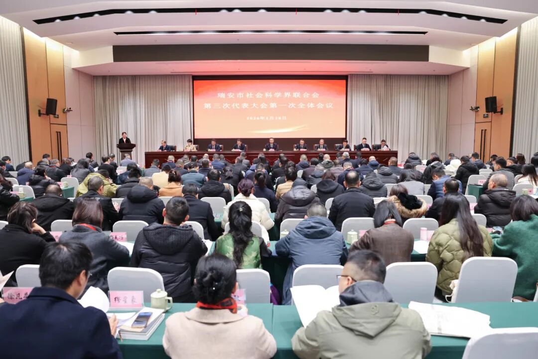 1月28日,瑞安市社会科学界联合会第三次代表大会召开。瑞安市委书记李剑锋,温州市社科联党组书记、主席潘晓勇出席开幕式并讲话。瑞安市领导陈汉存、应希克、林政洪、徐龙升、邹霜双、何志友等出席开幕式。群团组织代表、兄弟县(市、区)社科联代表致辞。