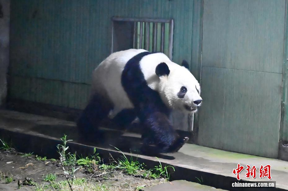 北京时间1月28日1时,中国旅居日本东京都恩赐上野动物园的大熊猫“晓晓”“蕾蕾”平安飞抵成都天府国际机场,随后于6时,顺利入住中国大熊猫保护研究中心雅安基地,接受隔离检疫。图为大熊猫“蕾蕾”。李传有 摄