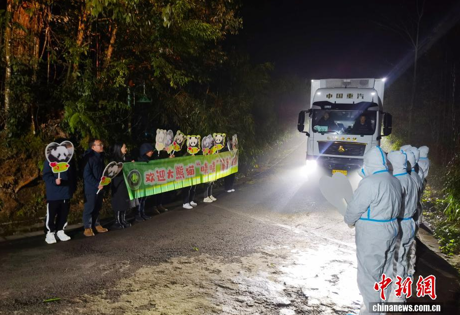 北京时间1月28日1时,中国旅居日本东京都恩赐上野动物园的大熊猫“晓晓”“蕾蕾”平安飞抵成都天府国际机场,随后于6时,顺利入住中国大熊猫保护研究中心雅安基地,接受隔离检疫。图为旅日大熊猫"晓晓""蕾蕾"抵达中国大熊猫保护研究中心雅安基地。李传有 摄