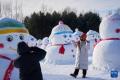 1月29日,游客在漠河北极村景区内的北极沙洲与雪人“矩阵”合影。 王祚 摄