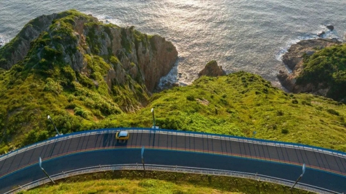 沿着168黄金海岸驱车前行,一侧是翠绿山峦,一侧是蔚蓝大海,这条被誉为“东方夏威夷”的景观带串联起苍南最美的海岸风光。每个转弯都可能遇见不同的风景——静谧的海湾、金色的沙滩、奇特的礁石。