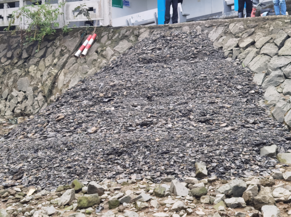 近日,鹿城区综合行政执法局执法队员开展瓯江沿岸常态化巡查时,在山福镇附近发现有人往瓯江边违规倾倒大量破碎瓦片,对瓯江水体造成污染。
