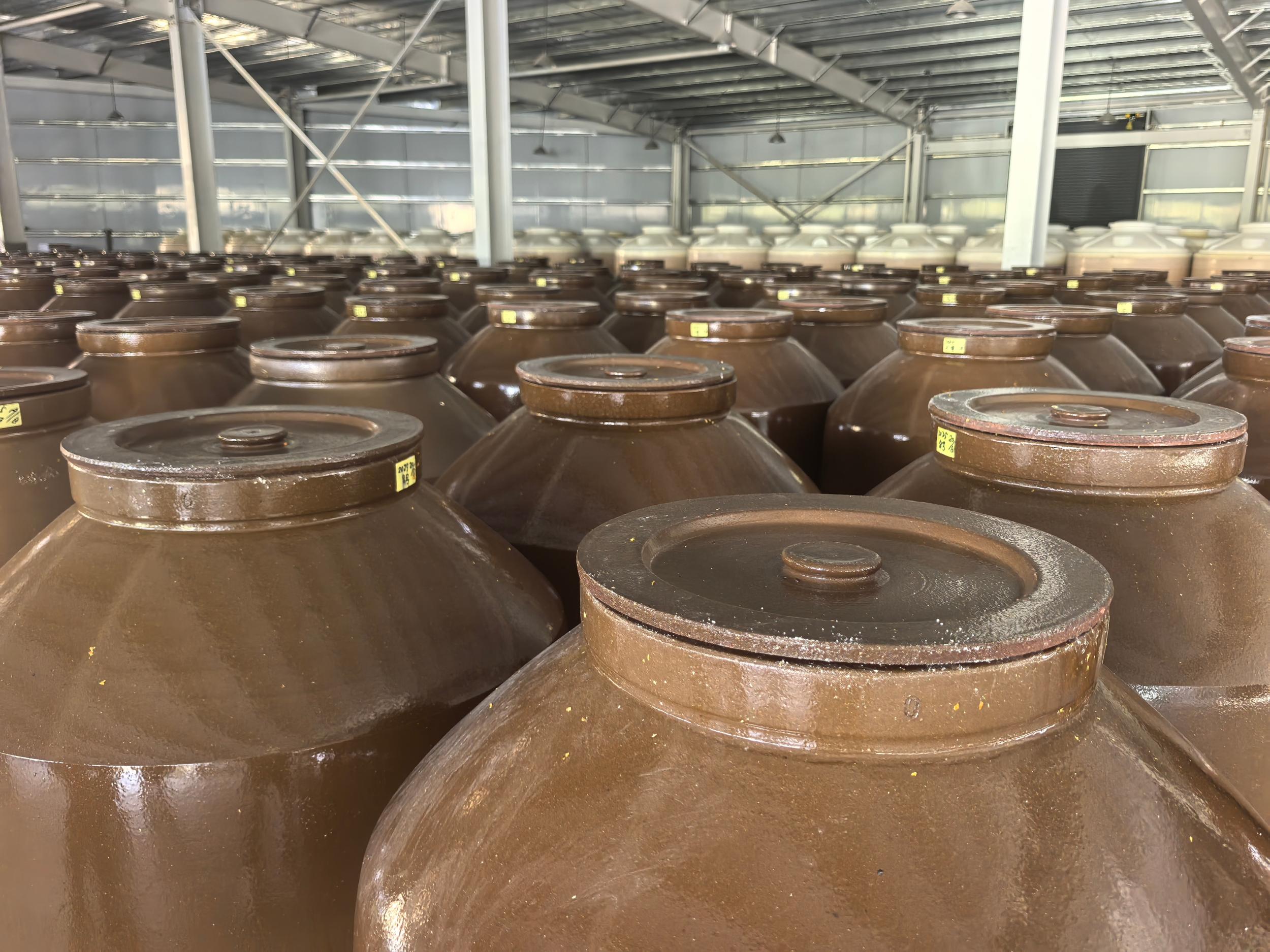 半人高的陶缸内装满了发酵中的辣椒酱。徐龙飞 摄