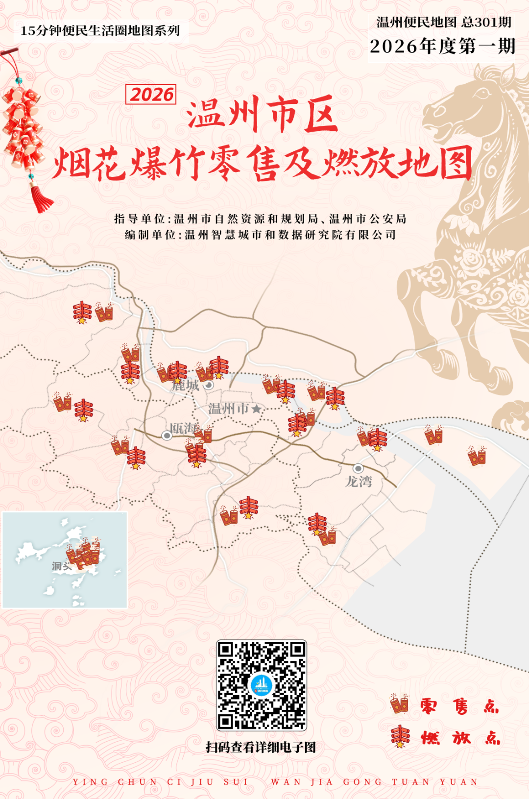 过年,少不了烟花的热闹和爆竹的声响。为兼顾传统年味与城市安全,在温州市自然资源和规划局、温州市公安局的指导下,温州智慧城市和数据研究院有限公司特别编制了《温州市区烟花爆竹零售及燃放地图》。地图清晰标注了市区合规的烟花爆竹零售区域、燃放区域,一键可查。