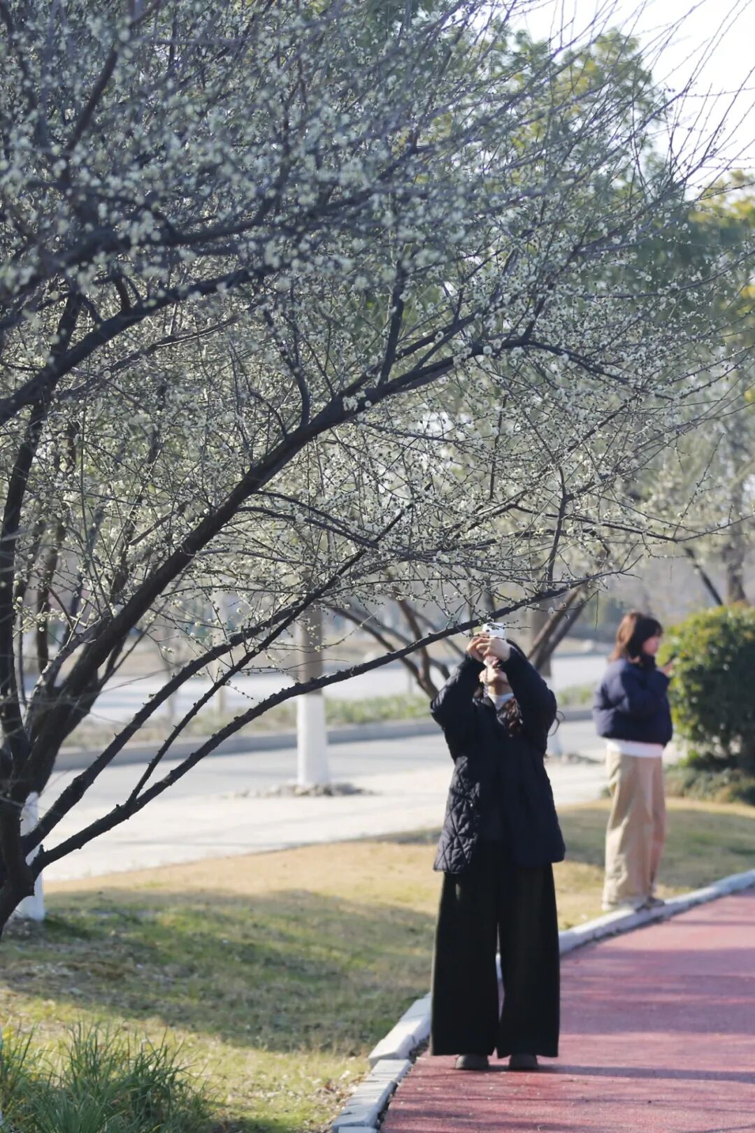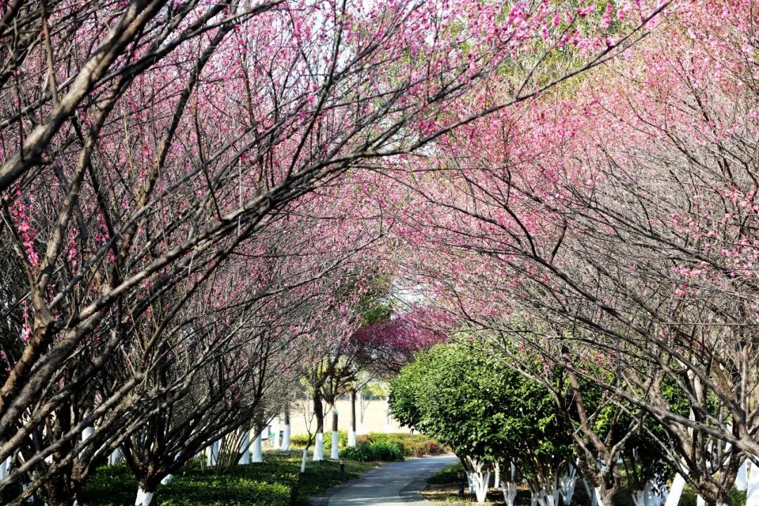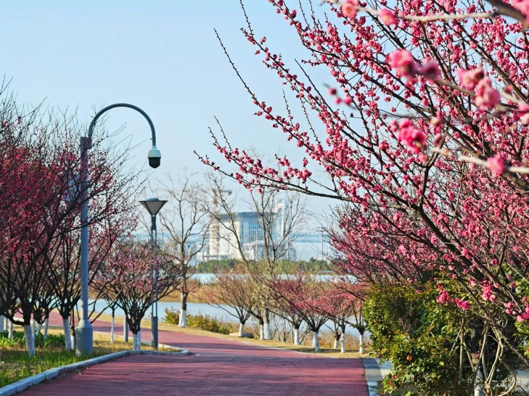 沿着绿道,处处红白相映,空气中弥漫着淡淡花香,引得行人纷纷驻足观赏。