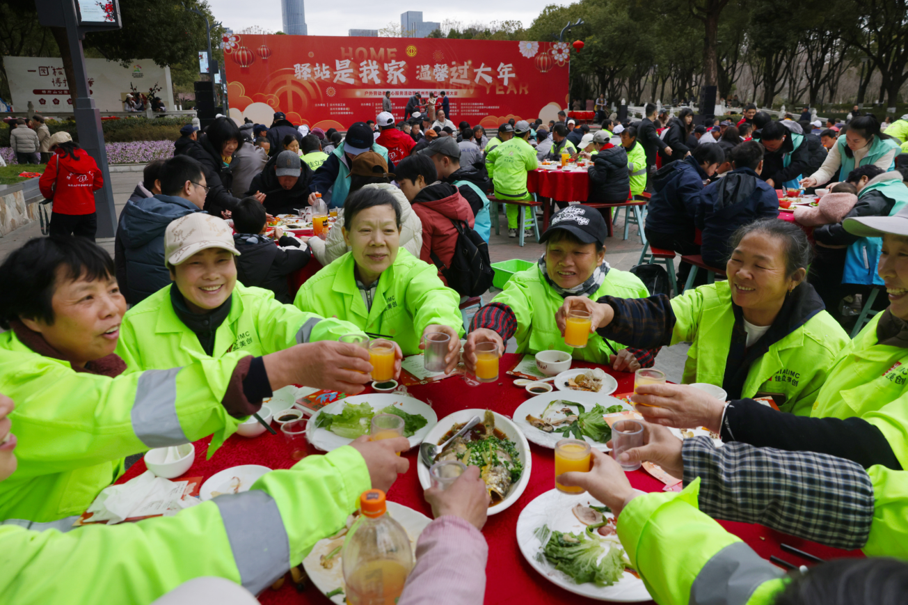 市总工会负责人表示,户外劳动者寒来暑往、风雨无阻,是城市正常运转的重要支撑。近年来,工会持续推进驿站建设,从吃饭、休息到补给,把一个个“难题”落到实处。“这顿年夜饭,是暖心宴,也是感恩宴。”他说,希望通过一桌热饭、一处驿站,让劳动者感受到——无论身在何处,工会是娘家,驿站就是家。