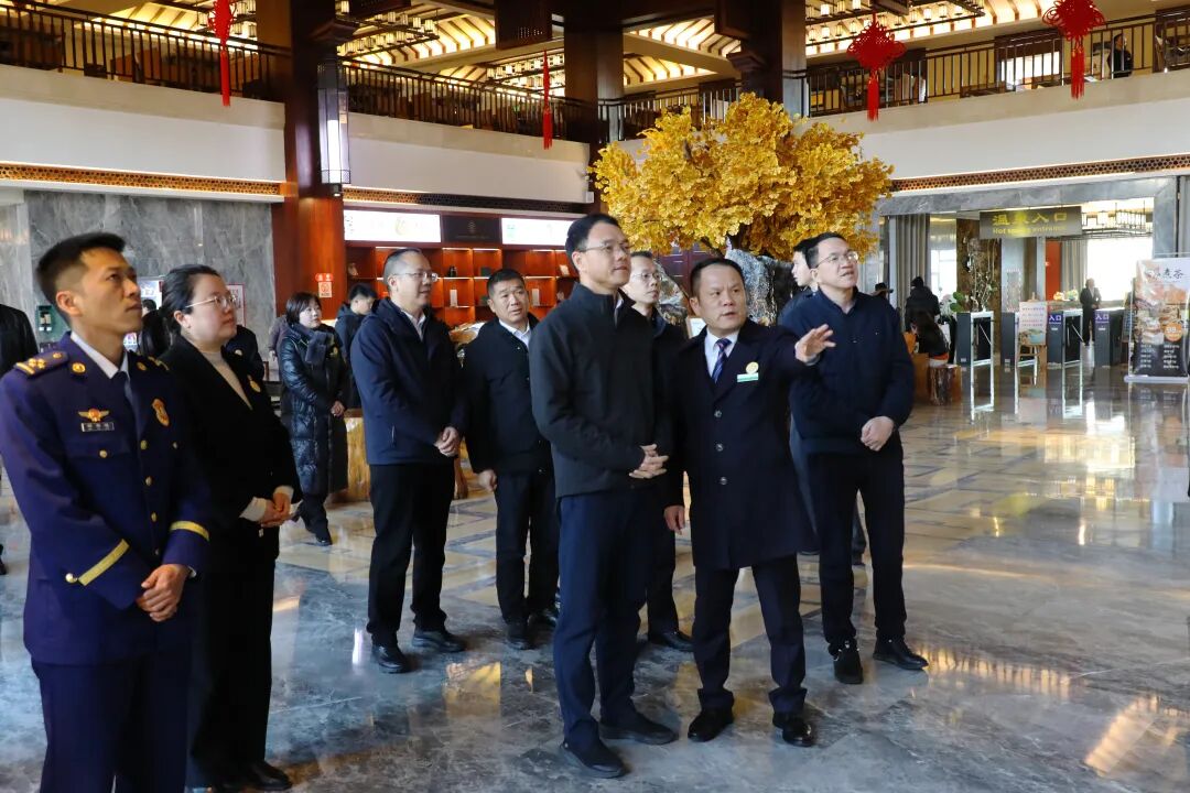 张银贵还先后前往莲云谷温泉度假酒店、松垟花开火车乐园和顺游驿站,实地察看各场所周边环境、配套设施及运营管理情况,详细了解节前预订、餐饮服务、客流疏导、服务保障等工作,现场协调解决相关问题。他强调,要紧紧围绕廊氡国家级旅游度假区复核工作要求,坚持远近结合、标本兼治,重在平时、持之以恒,以创新的思维、扎实的举措,强化景区精细化管理,统筹推进品牌打造、产品创新与服务提升,不断完善景区硬件设施,优化管理服务体系,推动网红景点变长红品牌。他叮嘱经营主体严格落实安全主体责任,相关部门要加强协同联动与精准指导,强化旅游市场监管,规范旅游市场秩序,优化安全出口、疏散通道等关键设施设置,全力保障游客安全游园、安心度假。