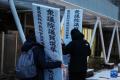 2月8日,在日本东京,工作人员在一处投票站外放置投票站标志。新华社记者 贾浩成 摄