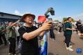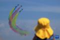 2月7日,在新加坡樟宜展览中心,观众观看中国空军八一飞行表演队的飞行表演。新华社发(邓智炜摄)
