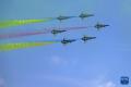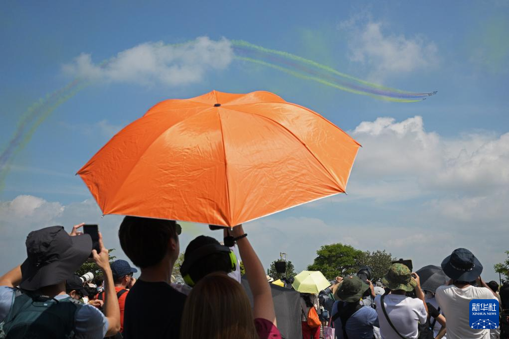 2月7日,在新加坡樟宜展览中心,中国空军八一飞行表演队进行飞行表演。新华社发(邓智炜摄)
