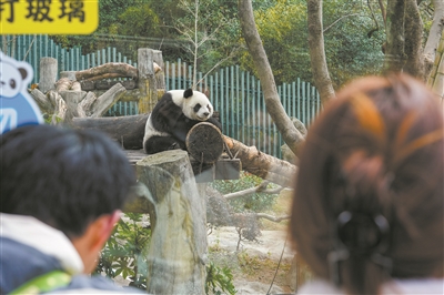 工作人员还告诉记者,早上八九点是大熊猫外出活动最活跃的时段,也是市民观赏大熊猫的最佳时间。“明星兄妹”俩性格活泼,每次出场,不少“独门绝技”常引得游客大笑。就拿吃竹子来讲,哥哥“雁雁”撸串式的吃法在大熊猫家族里独树一帜,而妹妹“楠楠”喜欢在雪堆里撒泼打滚,将圆圆的脑袋耷拉在冰雪上,“呼呼”地喘着热气。
