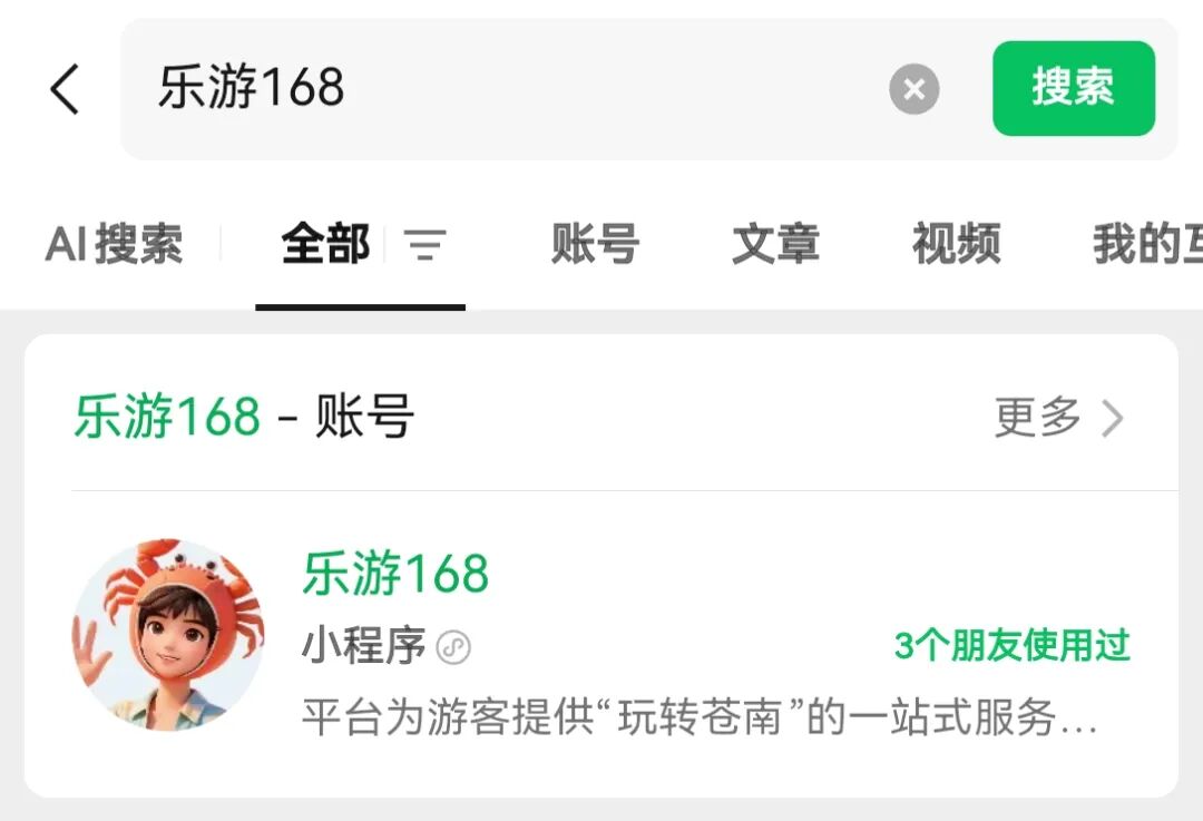 搜索“乐游168”或扫下方二维码,点击进入;