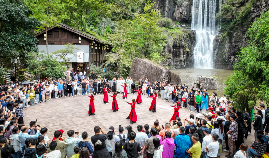 这些创新举措提升了百丈漈景区品牌价值,“百丈漈武侠大会”赢得社会赞誉和行业认可,从区域景点晋升为全国文旅新地标,先后荣获全国沉浸式文旅创新案例、省文旅融合示范项目等称号。景区游客结构、夜间消费活力和留客能力同步得到了优化和提升,过夜游客占比提升至近三分之二,省外游客占比提升至近四成,35周岁以下年轻游客占比大幅提升至八成多。文旅融合带来的共富效应也在持续放大,发展出上百家武侠主题民宿和农家乐,直接创造就业岗位千余个,带动村民人均年增收1.8万元。成立武侠共富联盟开发江湖系列伴手礼,年销售额破亿元。开发“武侠+乡村”旅游线路,带动沿线村集体收入年均增长超两位数。和三年前相比,去年景区接待游客数实现翻番,旅游综合收入增长137%,相关话题全网累计传播量超百亿次。