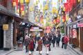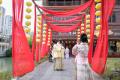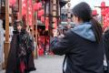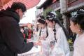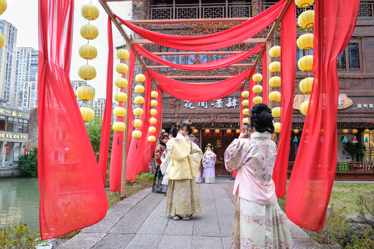 汉服体验区游人穿梭青石巷,华服映古韵,沉浸式感受传统年俗。
