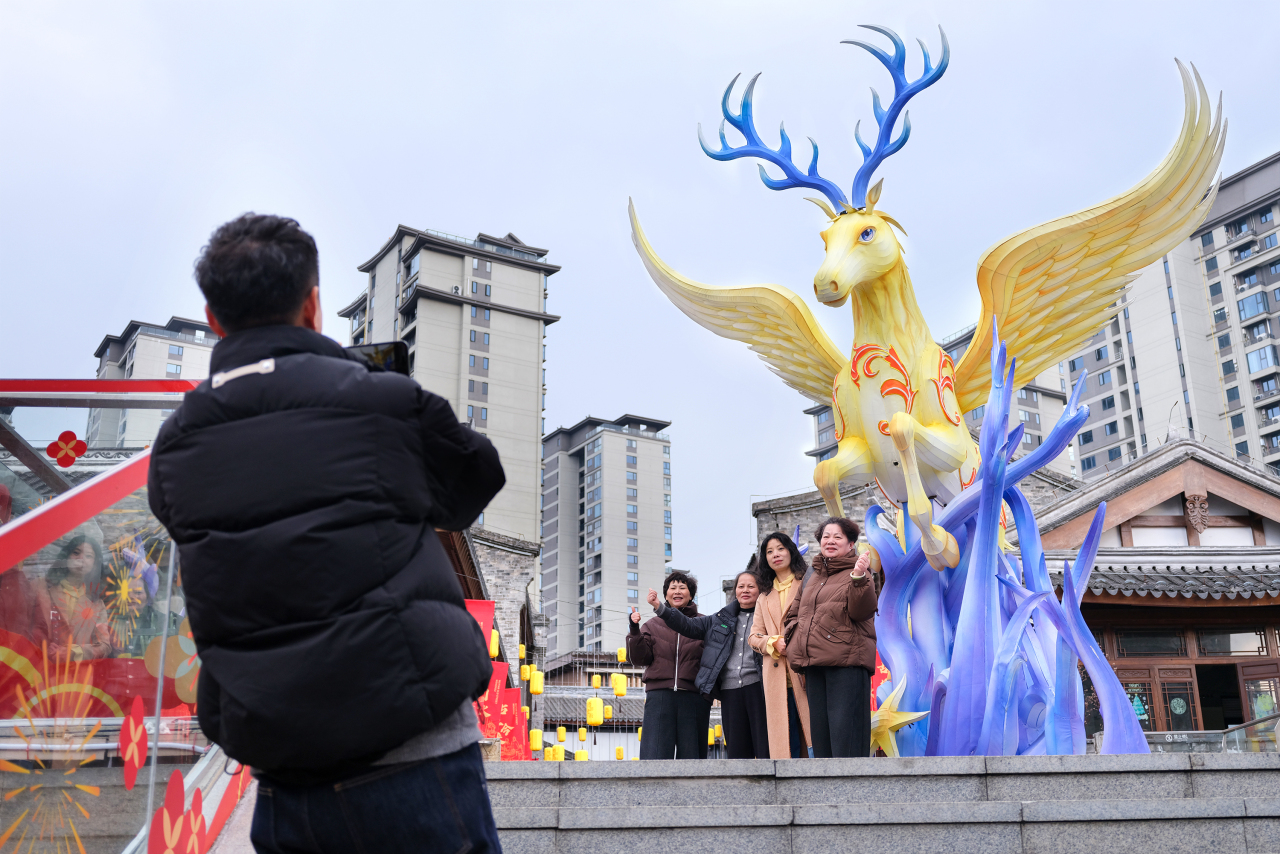 “好运墙”前市民笑语盈盈,镜头定格团圆喜悦。