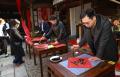 2月10日,在温州龙湾区寺前街,市民欢聚一堂体验捣年糕、写春联等传统民俗,在欢声笑语中感受非遗年味。摄影: 苏巧将