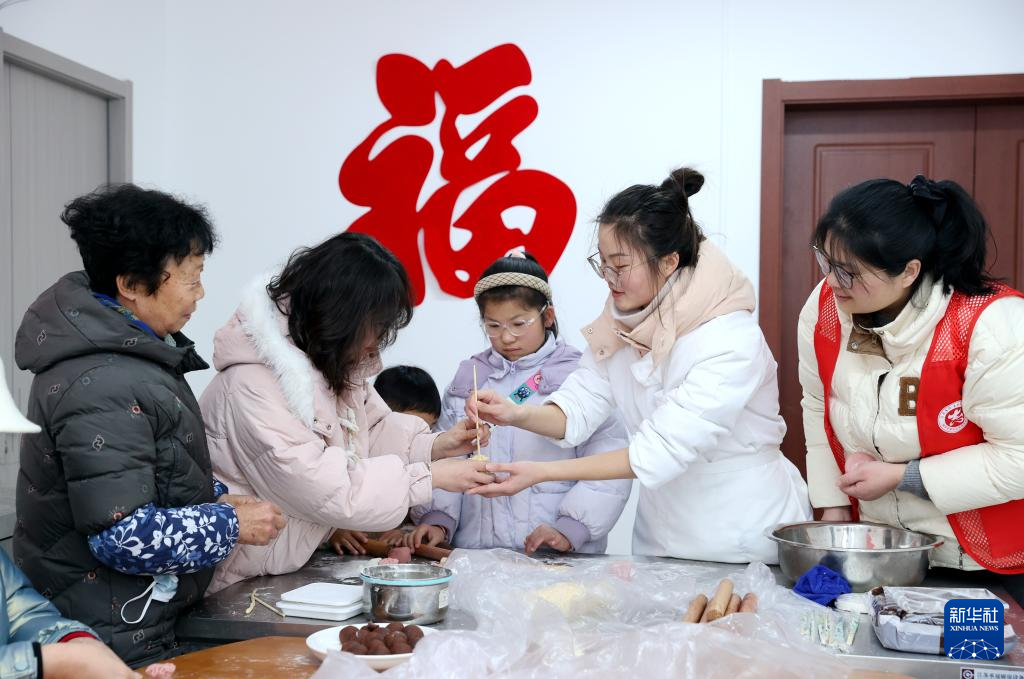 2月10日,在江苏省宿迁经济技术开发区黄河街道城宇社区举办的“福满社区·春贺万家”迎春嘉年华活动中,社区居民在体验制作花样面点。新华社发(王力摄)