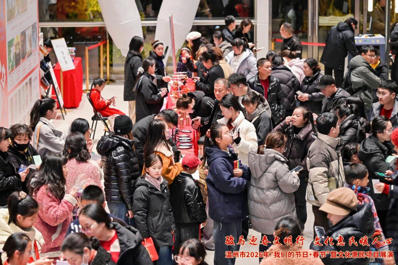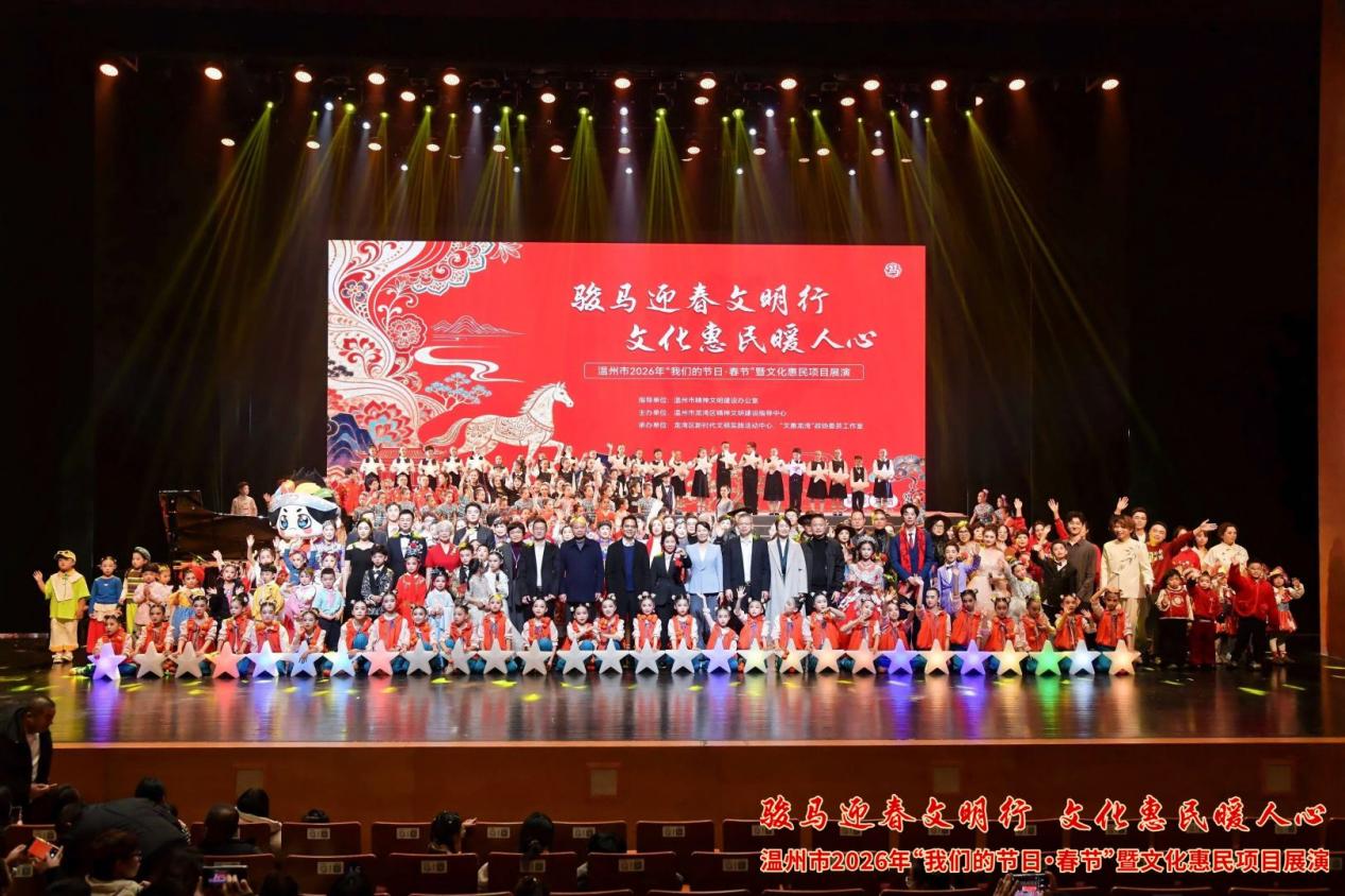 春节临近,各地年味渐浓。2月10日,浙江省温州市2026年“我们的节日·春节”暨文化惠民项目展演上演,旨在丰富群众精神文化生活,让市民在共享文化发展成果的美好氛围中喜迎春节。