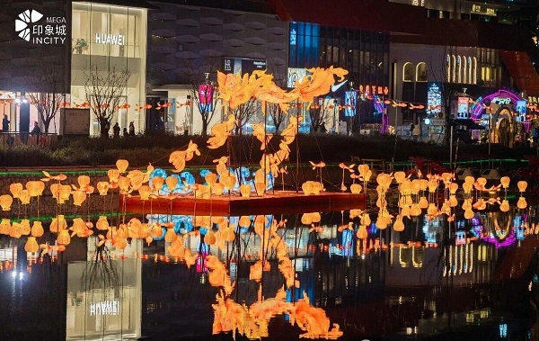 印象城滨水街区的“温州水上新春灯会2.0”则以80米长灯组横贯水面,打造出“水韵灯影”的独特景观。