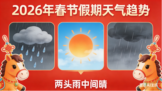 温州网讯 2月12日,温州市气象局发布2026年春节假期(2月15日至23日)天气展望,假期我市天气整体呈“两头雨中间晴”格局,气温先降后升,15日夜里起将受较强冷空气影响,出现降温、大风和小雨天气,市民出行需做好防范。