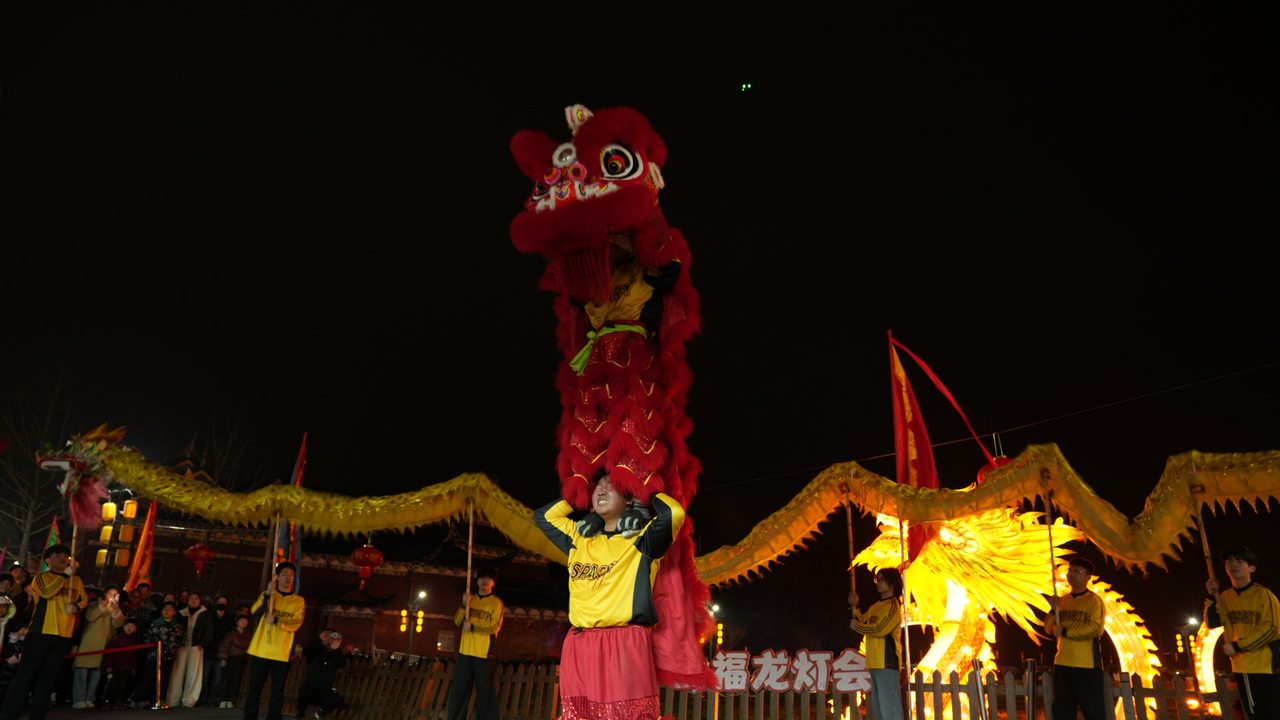 暮色渐浓,华灯初上,驿头驿阳村的年味愈发醇厚。伴随着激昂的锣鼓声,格橱龙灯巡游正式开启,通体鎏金的巨龙在龙珠的引领下,蜿蜒盘旋、灵动穿梭,舞龙者步伐矫健、身姿舒展,锣鼓声、欢呼声、喝彩声交织在一起,响彻古村夜空。留学生们被这热闹的场景深深吸引,纷纷跟随着龙灯队伍,一边欢呼一边拍照,沉浸式感受中国非遗龙灯的独特魅力,有的还忍不住伸手触摸龙身,期盼沾得新年福气。