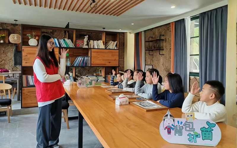 据介绍,“背包护苗”行动聚焦山区儿童“看管难、教育缺、兴趣寡”的痛点,吸纳教师、大学生、驻村干部等组建志愿队伍,通过“学生点单、平台派单、志愿者接单”的服务模式,将手工课程、作业辅导、心理关怀等内容纳入服务清单,并以村为单位开设小微课,将服务送达孩子们身边。