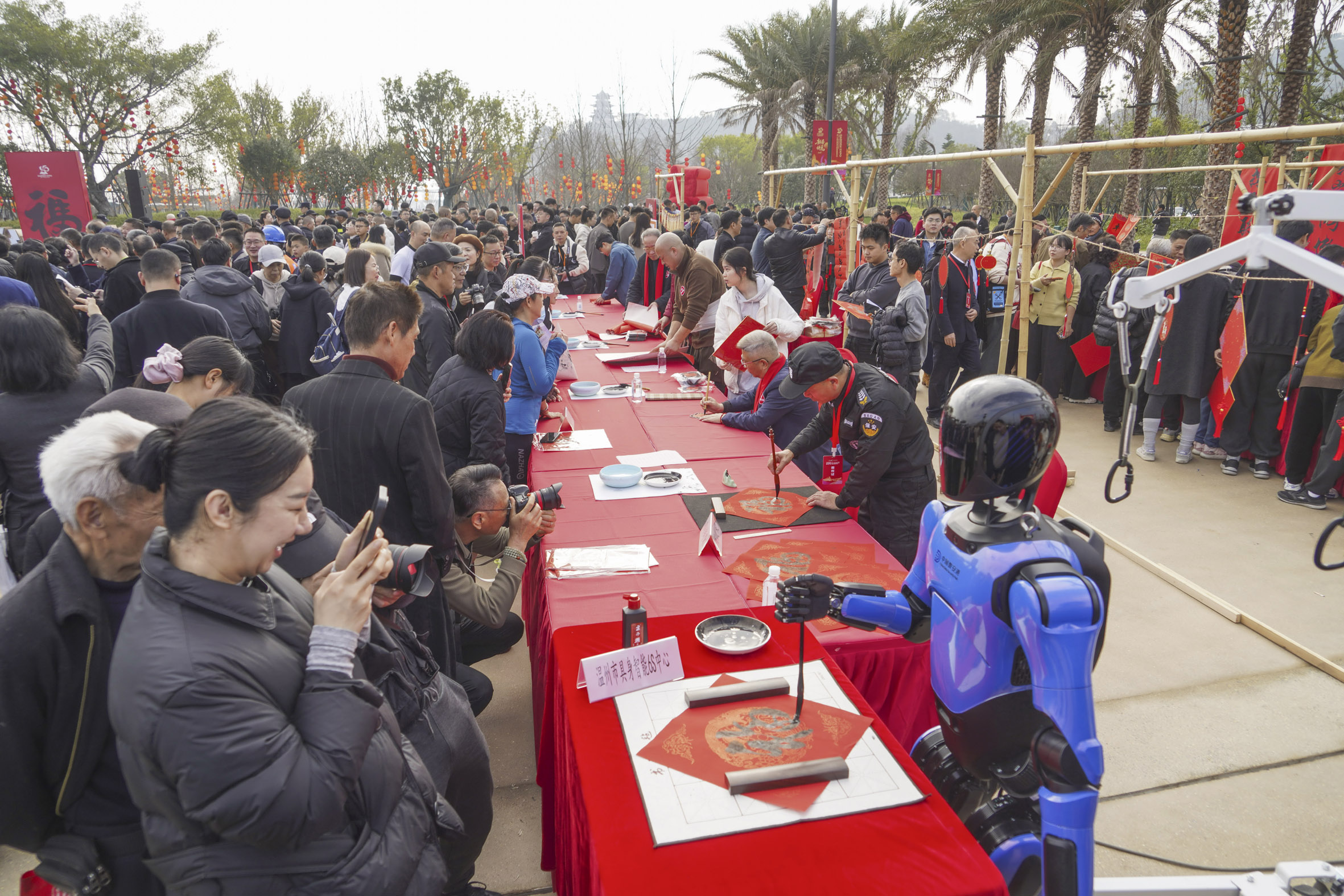 园博园里翰墨飘香人气旺 机器人、书法名家组团送“福”