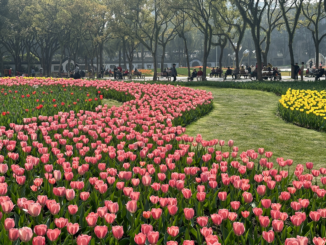等你在花海中迎春!市区马鞍池公园的郁金香开啦!