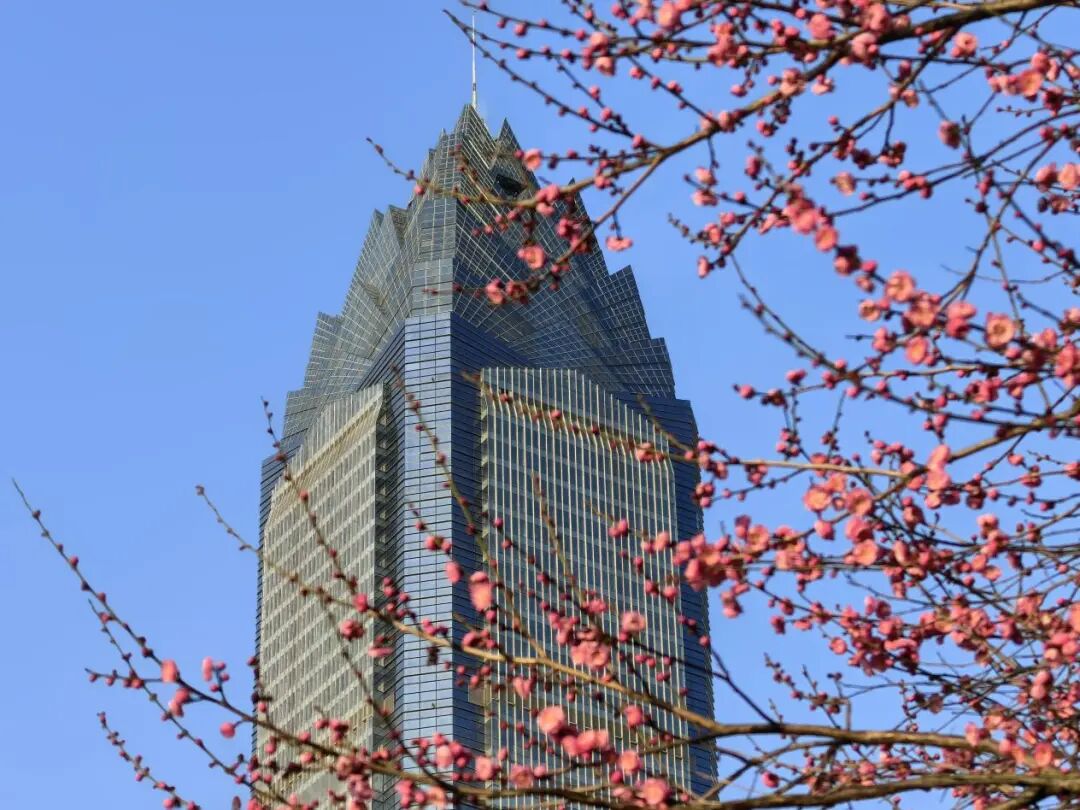 近50株红梅、宫粉梅、绿萼梅错落分布,尤以石拱桥畔最为动人。一树树绯云轻霞倚桥而生,或与石亭飞檐、园外世贸大厦相望,风景园林的诗意精巧和现代建筑相互映衬,是拍摄摄影小品的绝佳取景地。