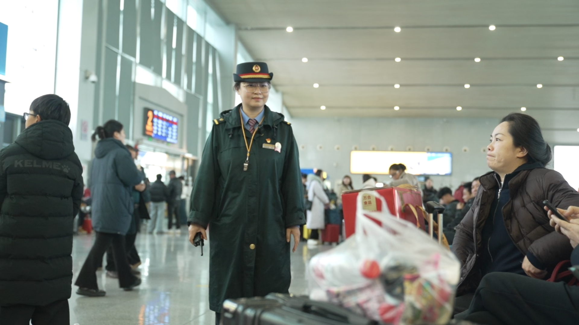 春运已过三分之一,站台的风依然很凉。当G7550次列车缓缓驶离,姜若梅转身走向候车室,她手里的对讲机,又传来了新的呼叫。