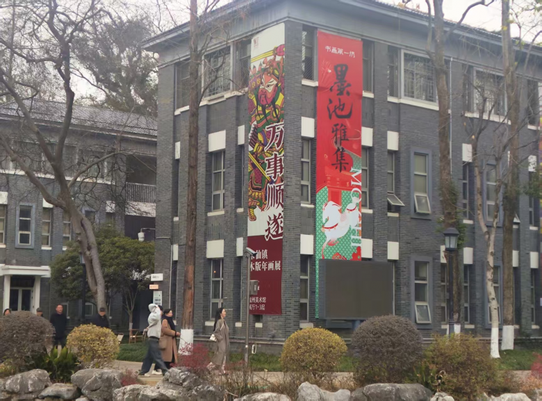 中午,市区墨池坊,不少市民携家带口前来观看“迎春艺术展”。展馆内,大家在画作前驻足欣赏品味。墨池公园成了热门打卡地,游览拍照的市民游客络绎不绝。树梢上挂着一张张春联,红纸映衬着仰起的笑脸,满是节日喜悦。