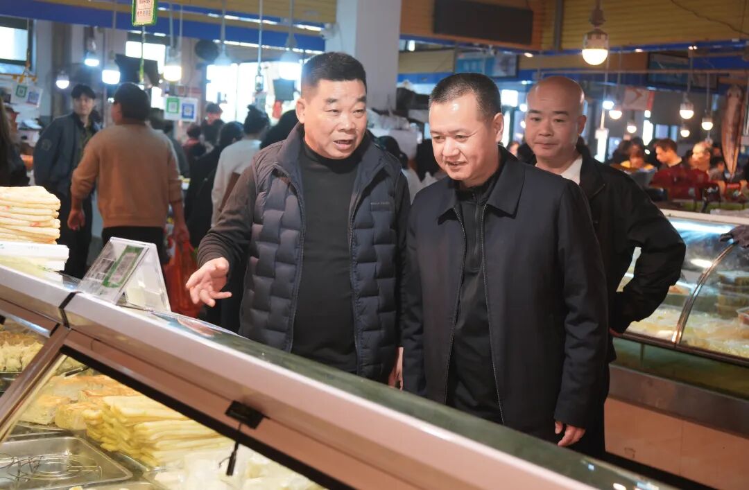 在东城街道城关农贸市场,吴呈钱深入食品销售区、生鲜柜台等重点区域,与水产、蔬菜、肉类等摊位商户交流,了解产品价格及销售情况,检查了解春节假期食品安全及食品保供情况。吴呈钱强调,食品安全是重要的民心工程和民生工程,要筑牢食品安全防线,强化市场保供稳价,切实让“菜篮子”“米袋子”供给安全、品种丰富,满足老百姓节日消费需求,让广大群众买得安心、吃得放心、用得舒心。