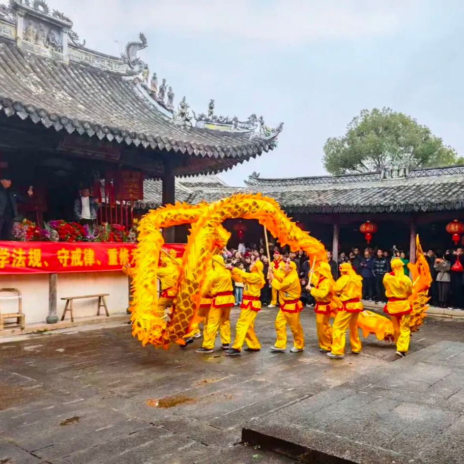 同样在山门镇,一场以“龙衔春色?马跃新程”为主题的新春巡游活动在热闹举行,上垟舞龙队与屿边舞龙队联袂出演。巡游中,舞龙队员们精神抖擞,高举龙杆,时而在人群中穿梭,时而聚拢翻腾,生动演绎了“卧龙翻滚”“龙翻吐珠”等七十二式经典套路。龙身熠熠生辉,气势恢宏,引得沿途观众阵阵喝彩,纷纷举起手机记录下这喜庆时刻。