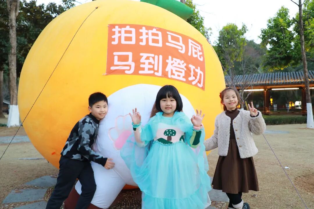年味更藏在九山书会的每个转角处。这里不仅有财神爷带着金元宝不时闪现,为偶遇的游客送上惊喜;更有“财神指金”“马到‘橙’功”等特色打卡点,将传统年味与创意文化碰撞交融;还有“快乐加码”亲子游园活动,以“赶马入厩”“套马纳吉”等特色环节,满足亲子家庭的出游需求。