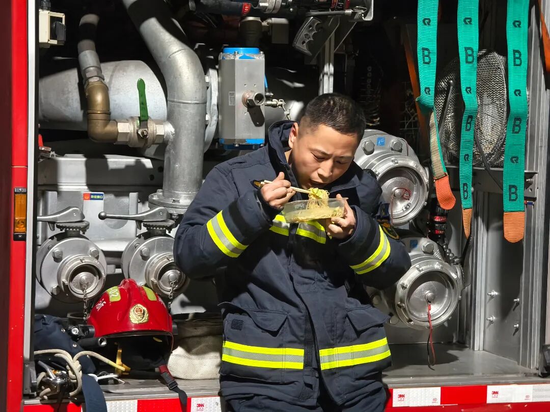 营门外的烟花绽在夜空,碎成漫天星火时,我正凝望着值班室调度屏上跳动的字节。作为基层消防救援站的执勤干部,我已在队站里守过的十几个春节。家中的团圆饭桌,总少了我的身影,但警铃乍响时的逆行,早已是我心底最深刻的年味记忆。去年队里除夕的年夜饭很简单,几样家常小菜,一锅滚热的汤,没有山珍海味,却让来自天南地北的战友们品出了别样滋味。大家围坐桌前,聊起各自家乡的年俗——北方的饺子、南方的年糕,还有老家里守岁的灯火。没有家人绕膝,战友便是最亲的人;没有丰盛宴席,并肩作战的情谊便是最暖的年味。