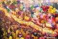 春节假期,陕西延安迎来旅游热潮,金延安景区里张灯结彩、热闹非凡,精彩演艺轮番上演,吸引八方游客欢聚,共度新春佳节。图为打铁花。任龙 摄