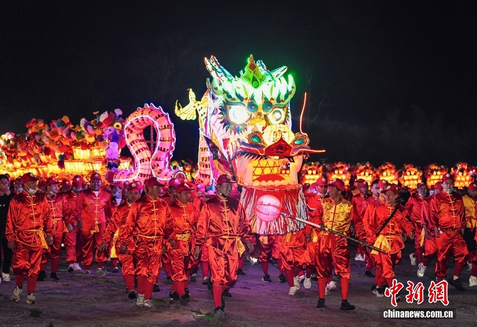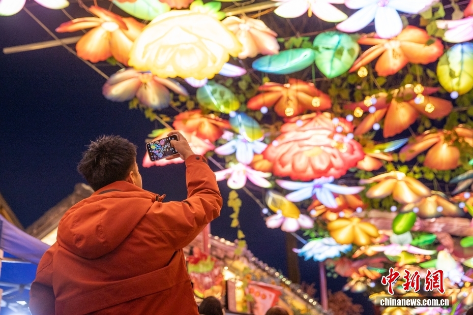 2月19日,农历大年初三,市民游客在山西高平釜山村赏花灯。中新社记者 杨郁然 摄