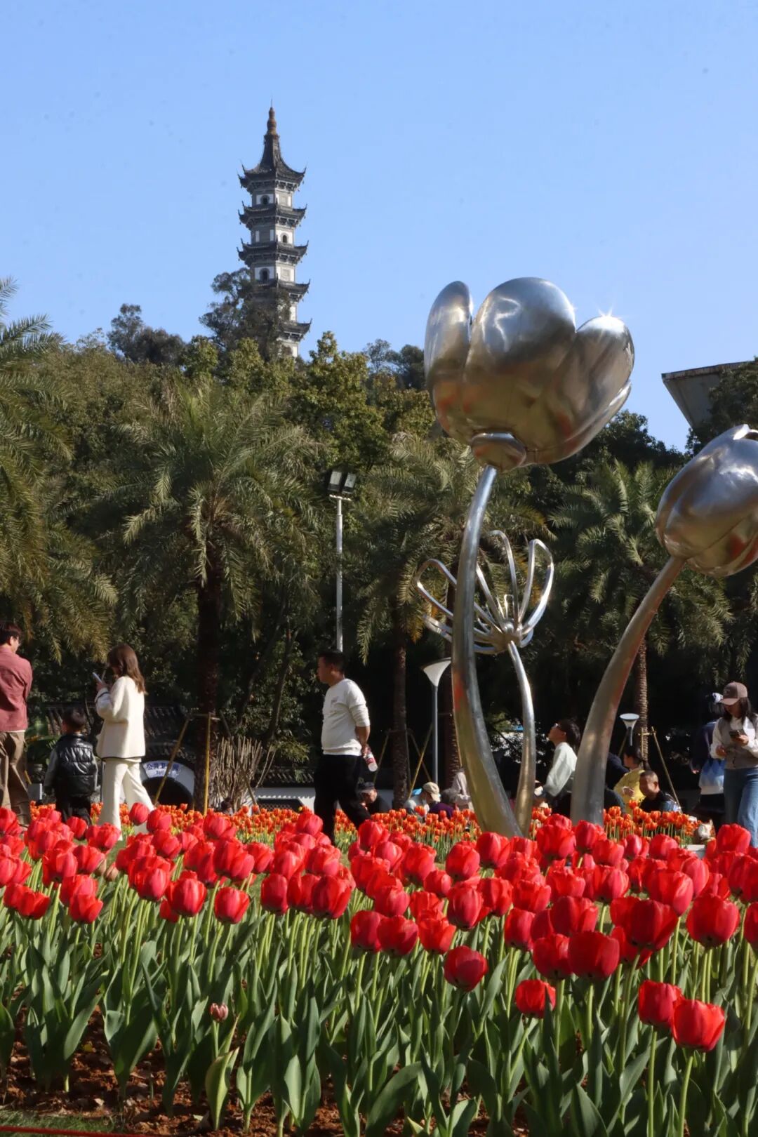 这个春节,鹿城暖风拂面,春意已悄然漫过枝头。在马鞍池公园,春天的第一抹亮色来得比往年更早一些——园内的“顶流”郁金香已亭亭绽放。第23届马鞍池公园郁金香花展也有消息了——预计农历正月十五(3月3日)左右拉开帷幕。一起走进这片被花朵点染的画境,沉浸式解锁“赏花+游园”的双重新春年味吧!
