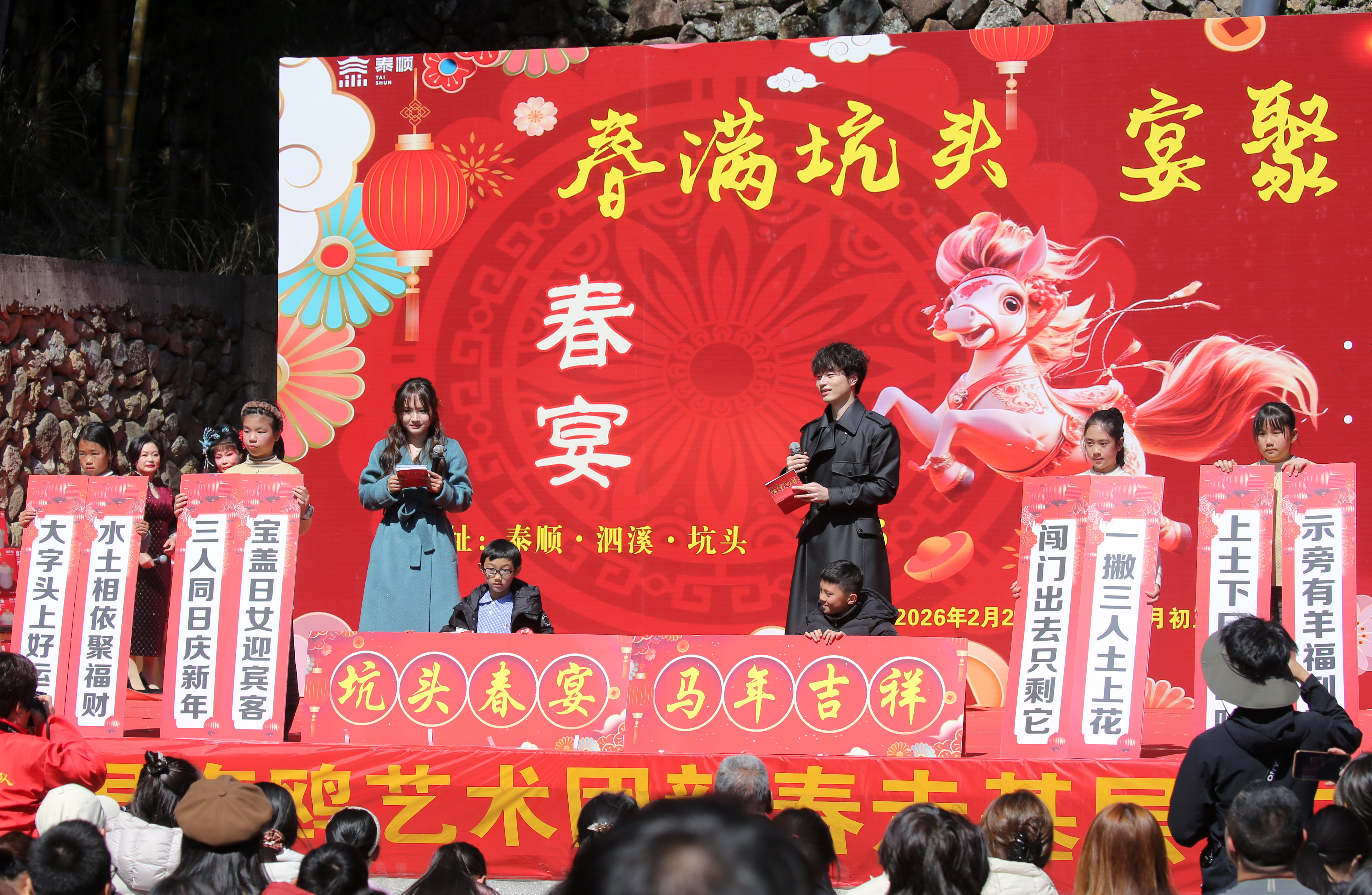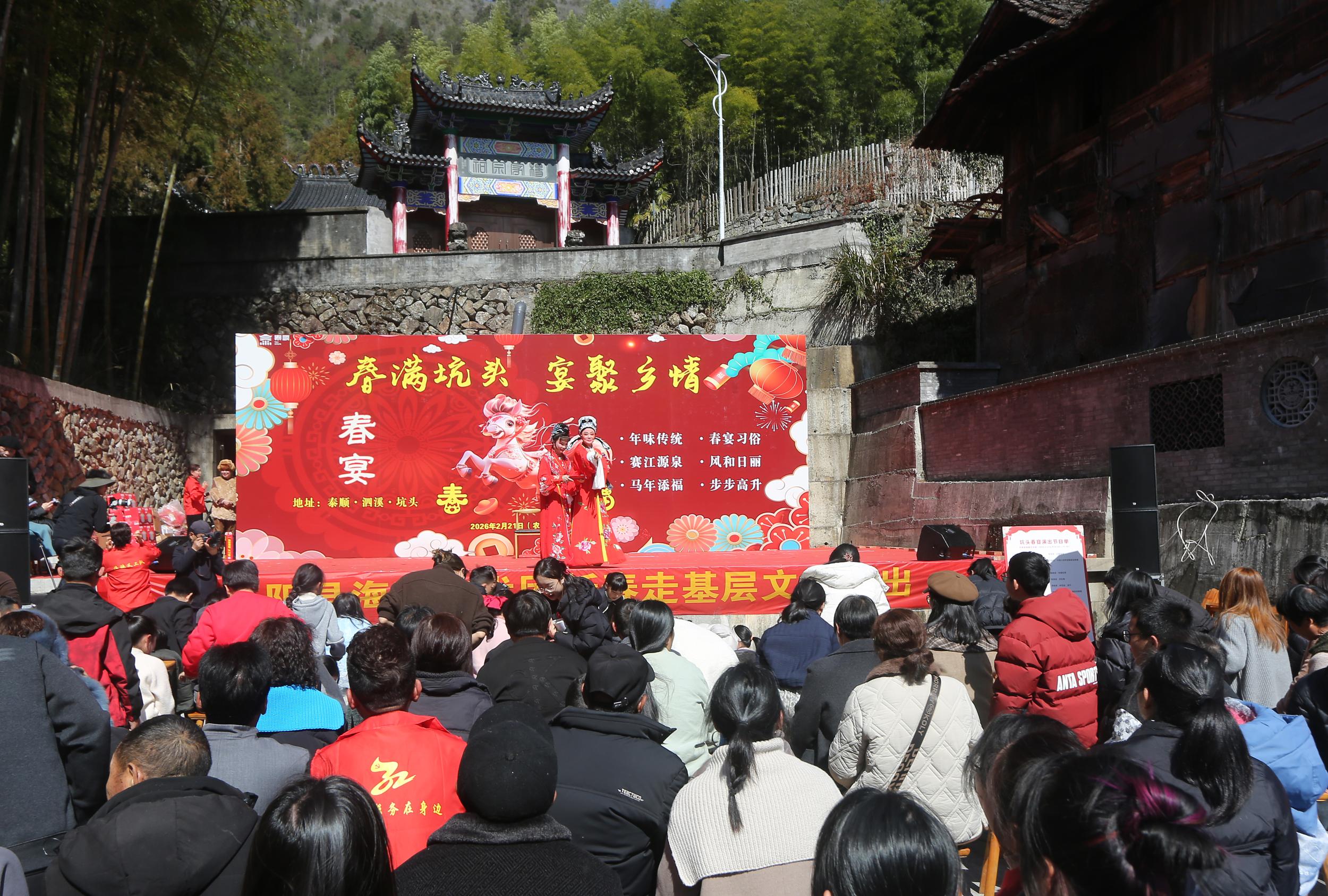 2月21日(正月初五),地处泰顺、文成、平阳、苍南四县交界地的泰顺县泗溪镇坑头村热闹非凡。当日,该村举办了纯乡土年味的“春满坑头 宴聚乡情”坑头春宴活动。