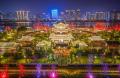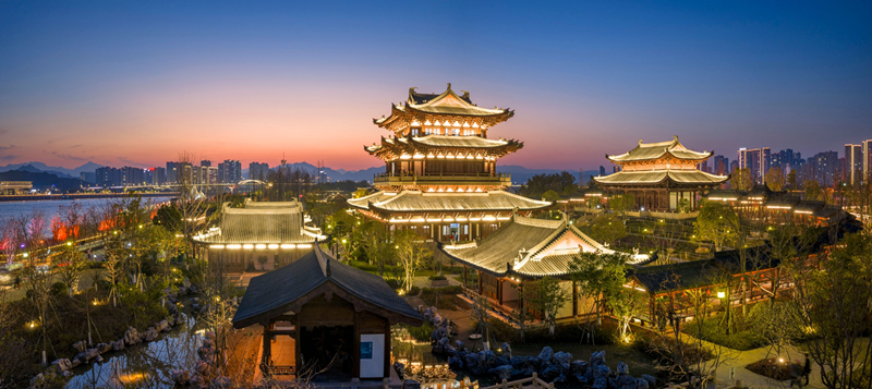 2月20日傍晚时分,温州市区江心屿景区郭公阁华灯次第亮起,古建与夜色相映成趣,吸引市民和游客前来赏景游玩,乐享新春佳节。苏巧将/摄