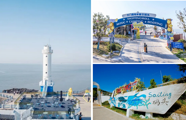 沿公路继续骑行,海风愈发清冽,大门西海岸赛尔码头已在眼前。标志性的蓝白灯塔矗立在海边,塔身被海风刷出自然的肌理,背景是宽阔的海面与远处的岛影,随手一拍,便是自带滤镜的海滨大片。累了就钻进码头旁的咖啡馆,点一杯热拿铁,看窗外海浪拍打着防波堤,暖意从手心蔓延到心底。