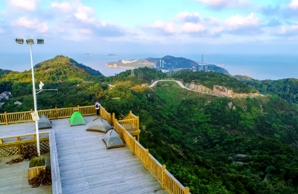 从鹿西码头出发,车轮碾过沿海公路,一侧是黛色山壁,另一侧是无垠大海。骑不多远就到山坪露营观景平台——鹿西岛的“观景C位”,不妨停下来,登高望远,将整座岛屿的山海轮廓尽收眼底。