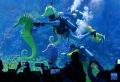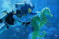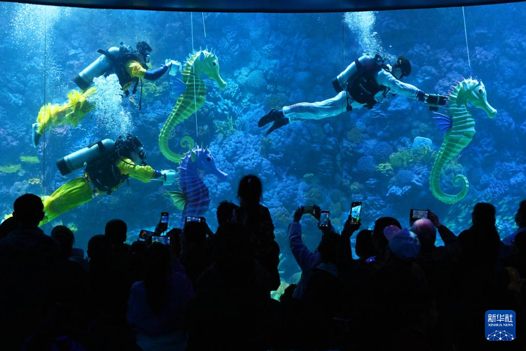 潜水员操控海马道具在水中相互追逐,欢快趣味的表演令游客耳目一新。记者 李紫恒 摄