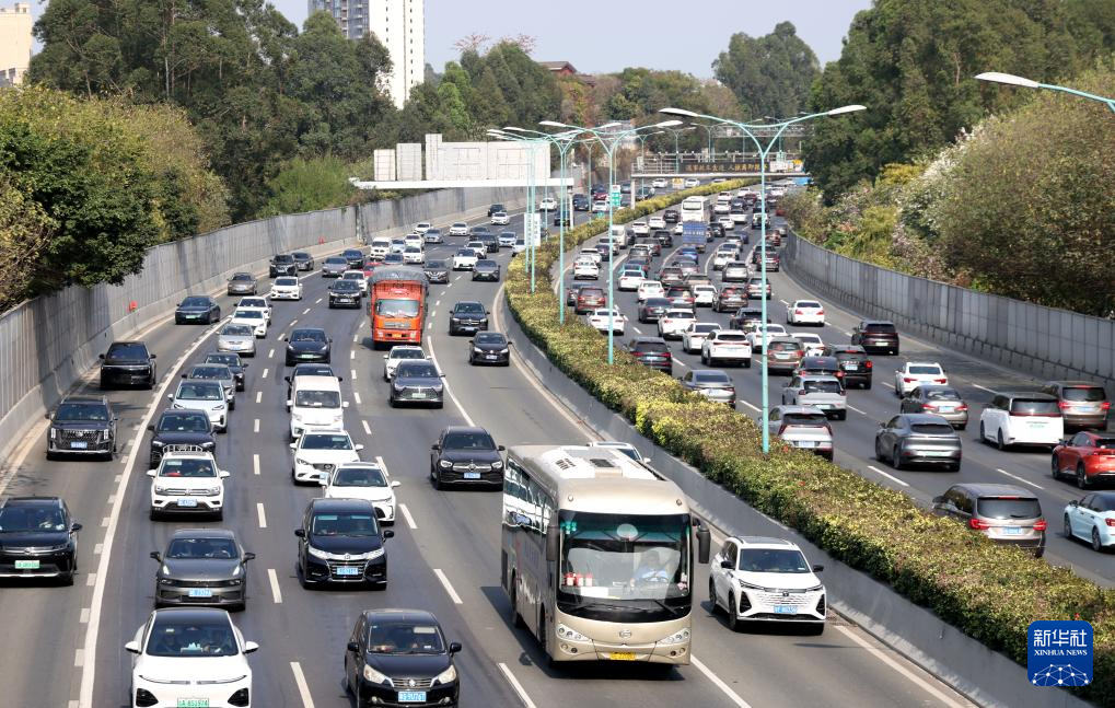 这是2月23日拍摄的广州环城高速公路上的车流。新华社记者 卢汉欣 摄