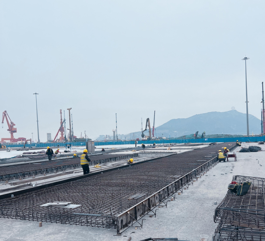 浙江(华东)深远海风电母港(核心区)一期码头(港池)工程施工现场。
