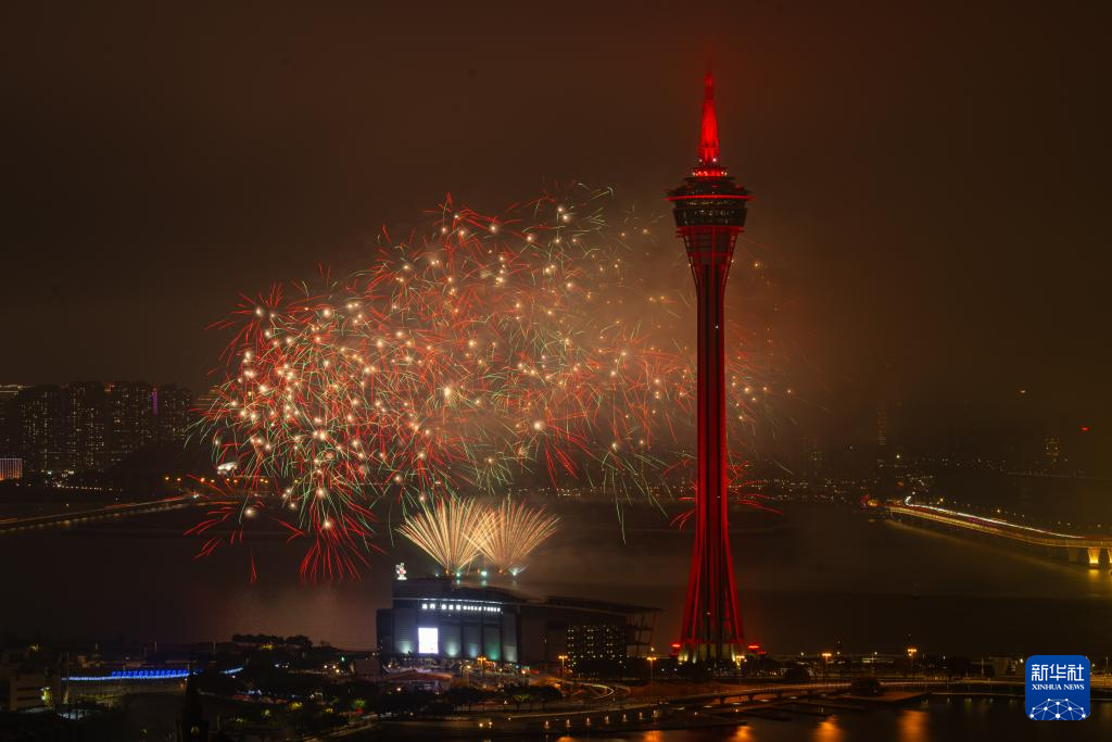 2月23日,澳门旅游局在澳门旅游塔对出海面举行“金骏云翔 欢乐春节”2026无人机烟花汇演第二场。张金加 摄