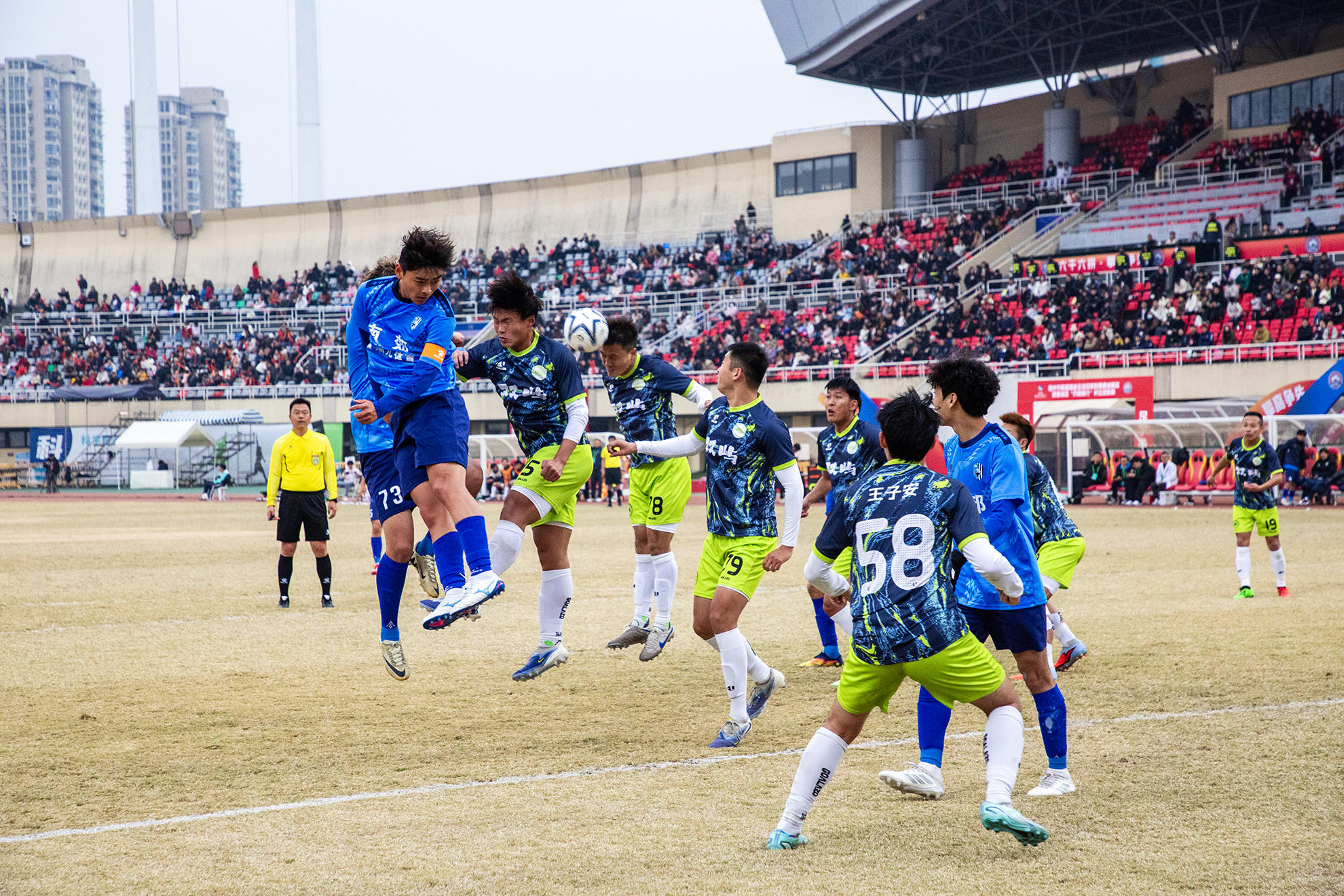 陈彦桦(带袖标者)头球攻门