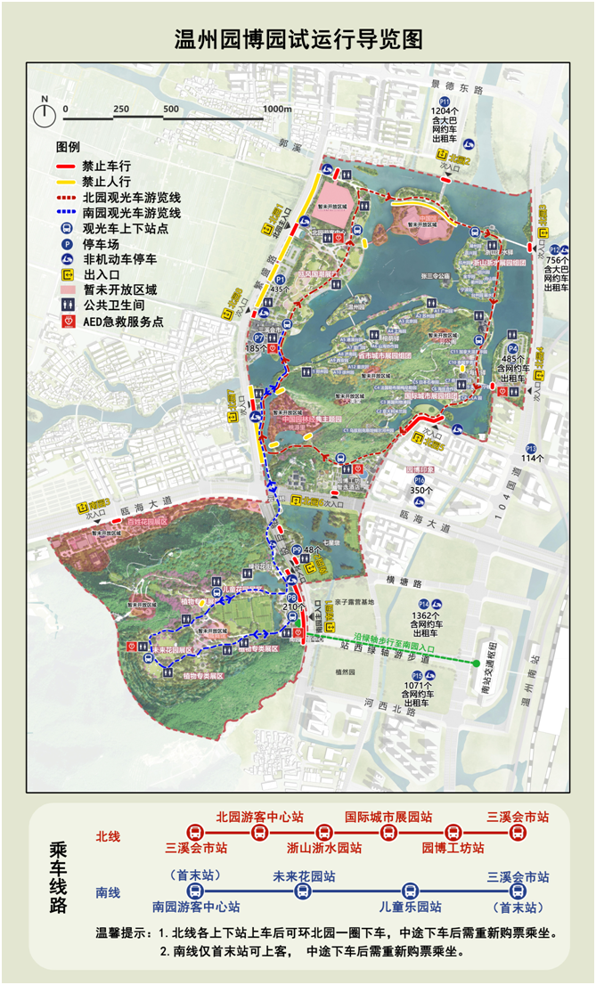 试运行期间,北园入口正常开放,南园入口南1、南2开放(详见试运行导览图)。