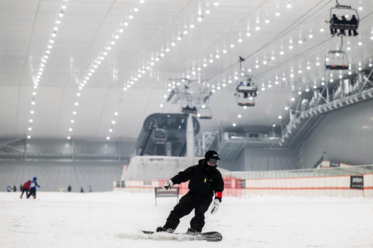 1月13日,游客在武汉城建热雪奇迹室内滑雪场滑雪。新华社记者 伍志尊 摄