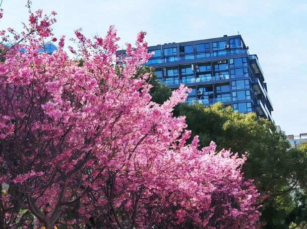 2万余株樱花陆续开放,其中,8000多株早樱红粉佳人樱已满园绽放,6000余株早樱和牡丹樱也进入了盛花期。